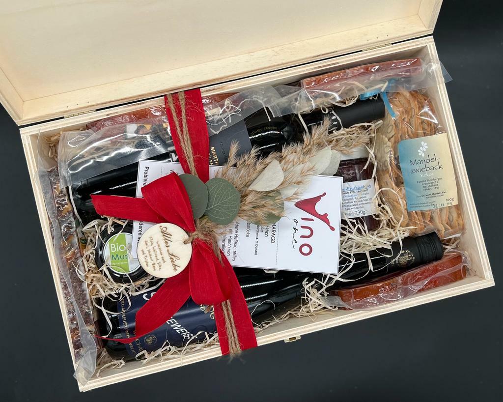 Für mehr wie 3 Flaschen Wein und regionale Schmankerl als Geschenk zu jedem Anlass!
