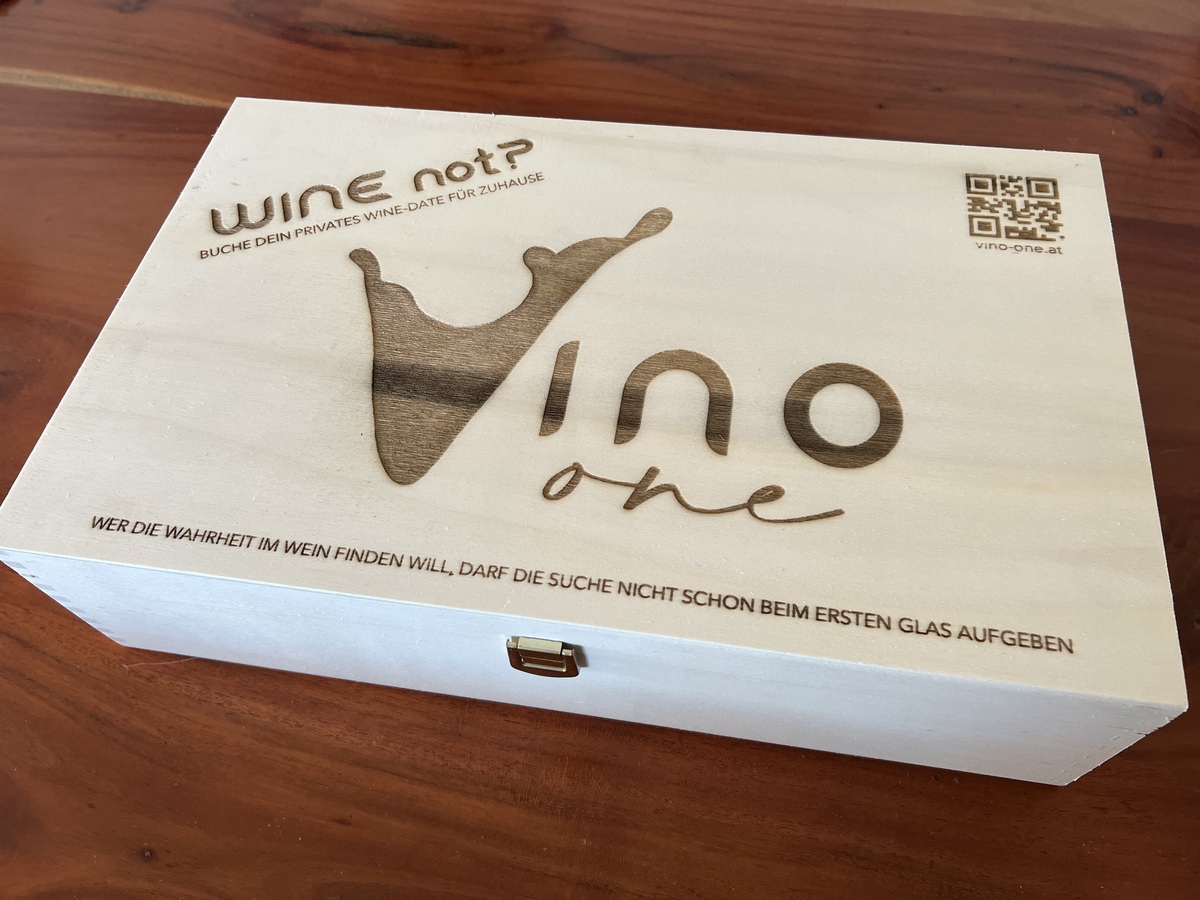 Unsere Holzboxen mit Klappdeckel aus Pappel-/Birkenholz haben eine Größe von ca.400x240x100mm (Innenmaß), werden mit Holzwolle ausgekleidet und können mit bis zu 3 Weinflaschen oder/und regionalen Schmankerl von unseren Partnerbetrieben gefüllt werden.