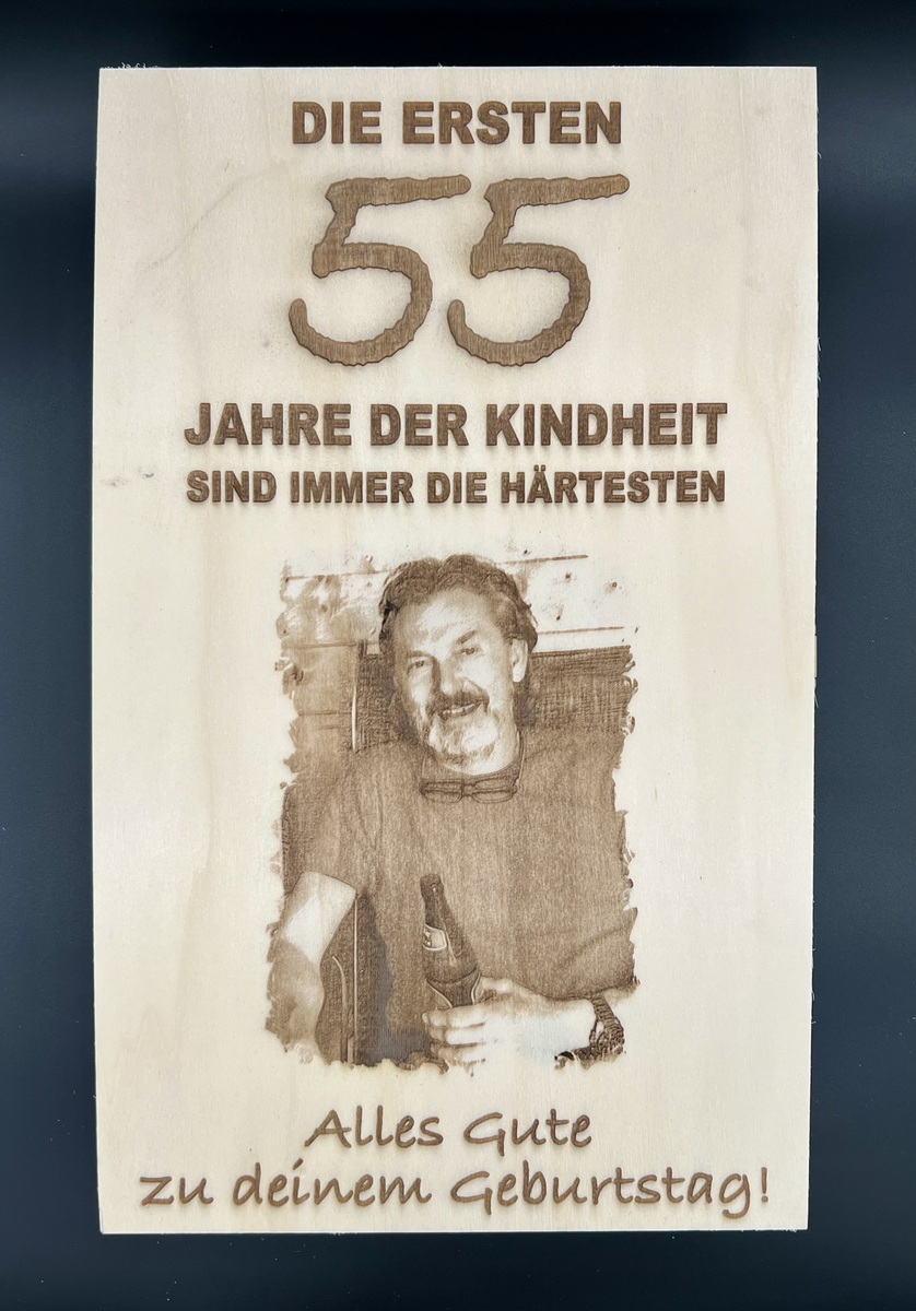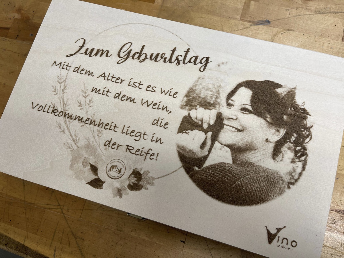 Mit Text-Gravur und einem Foto (inklusive Fotobearbeitung)
