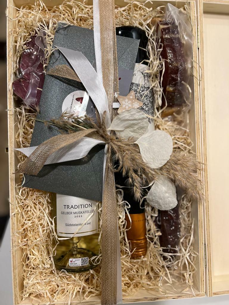 Bis zu 2 Flaschen Wein und/oder regionale Schmankerl als Geschenk zu jedem Anlass!
